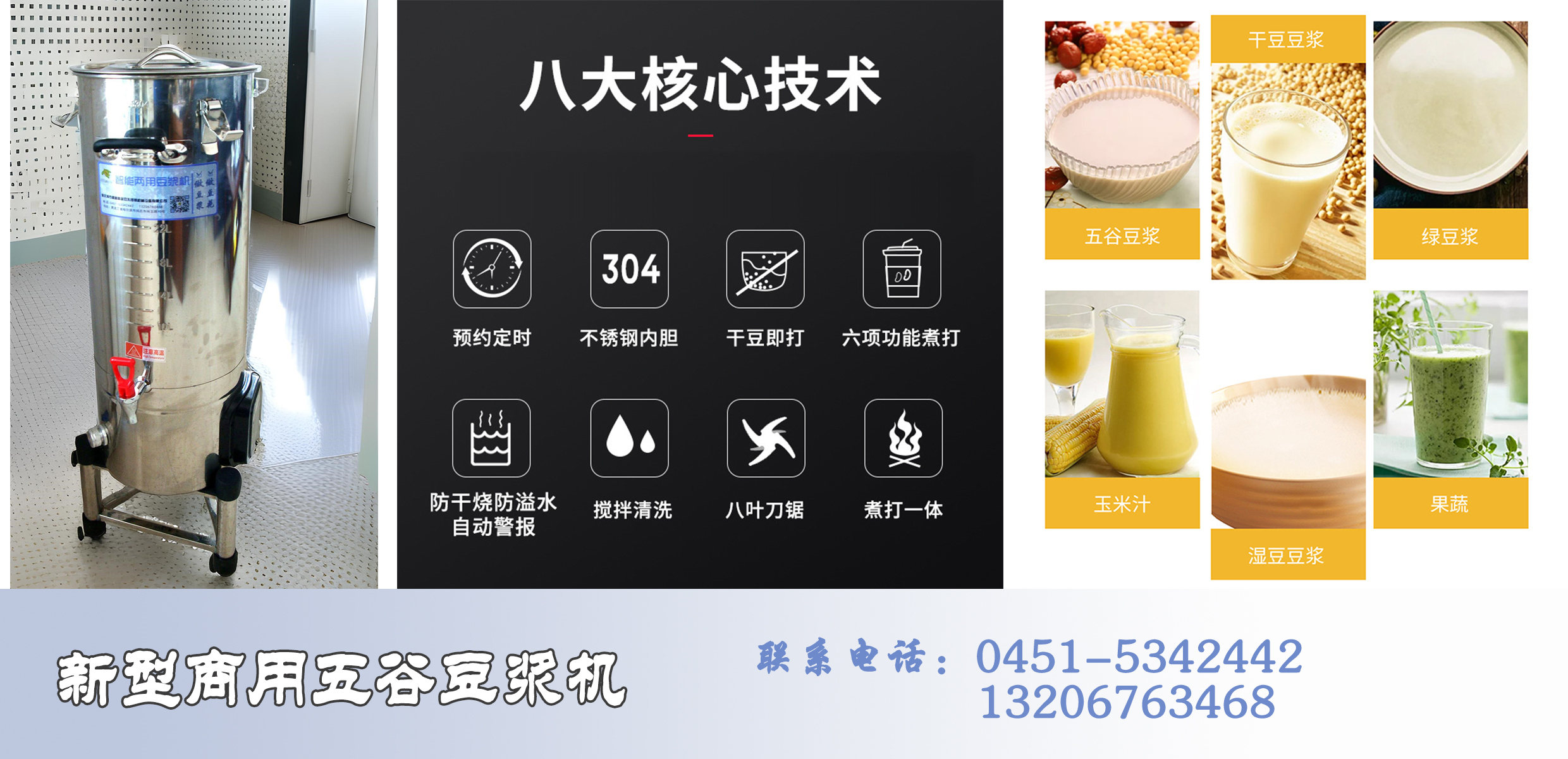 《哈爾濱市盛迪鑫金豆不銹鋼機(jī)械設(shè)備有限公司》主要經(jīng)營(yíng):豆制品加工生產(chǎn)設(shè)備、酒店廚房設(shè)備和不銹鋼機(jī)械設(shè)備制造等,公司根據(jù)客戶需求,結(jié)合國(guó)內(nèi)外同類(lèi)產(chǎn)品的先進(jìn)經(jīng)驗(yàn),以不斷更新研制產(chǎn)品自動(dòng)化為主,讓用戶使用上先進(jìn)、衛(wèi)生、可靠的生產(chǎn)設(shè)備。2010年公司(豆腐機(jī)、豆?jié){機(jī)、煮漿機(jī)系列產(chǎn)品),榮獲:CHC高科技質(zhì)量監(jiān)督委員會(huì)《監(jiān)督檢測(cè)合格*質(zhì)量信得過(guò)產(chǎn)品》的稱(chēng)號(hào);2011年被評(píng)為我市的十佳創(chuàng)業(yè)之星,2016年《盛迪鑫金豆》被評(píng)選為哈爾濱市商標(biāo)。